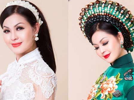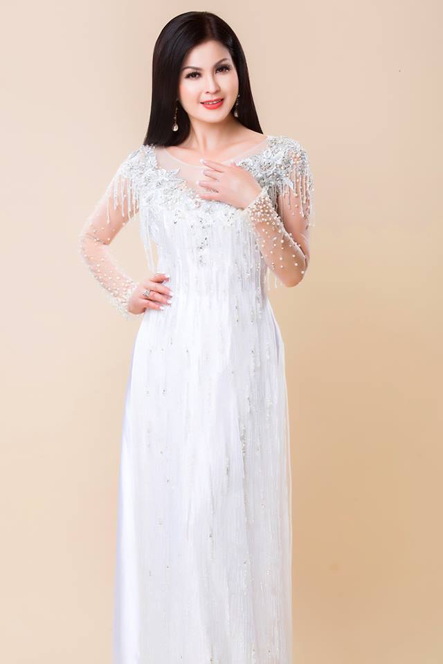 Nữ diễn viên 40 tuổi thướt tha trong tà áo dài truyền thống.