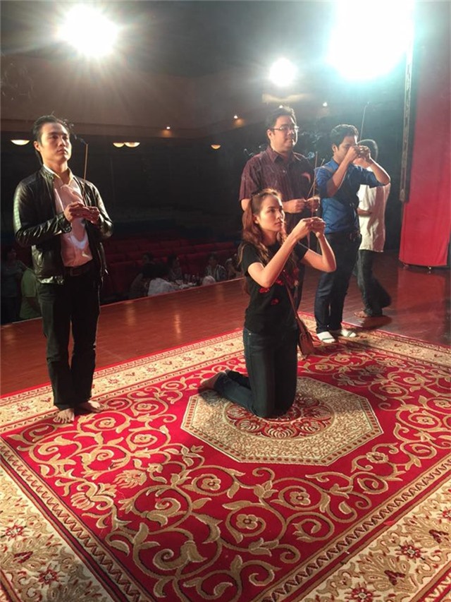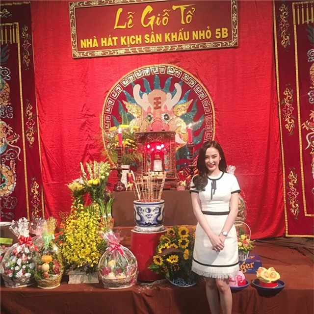 Angela Phương Trinh: Hôm nay Trinh đi dự lễ giỗ Tổ nghề ở sân khấu kịch 5B cùng với các anh chị diễn viên. Cầu mong Tổ luôn phù hộ cho tất cả anh chị em nghệ sĩ có thật nhiều sức khoẻ, thành công và luôn toả sáng.