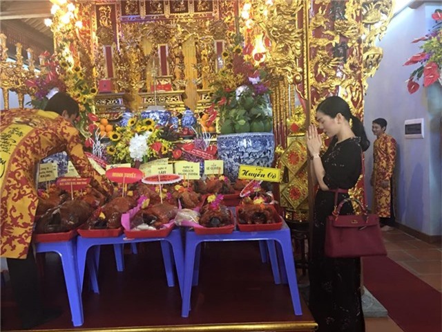 Lệ Quyên: Hôm qua cúng Tổ ở nhà rồi, hôm nay đến nhà thờ Tổ để cúng Tổ với anh chị em nghệ sỹ.
