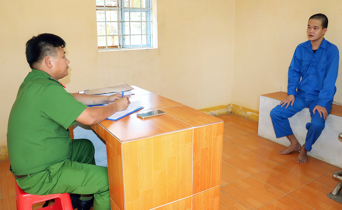 Bị can Huy tại cơ quan công an. Ảnh: Công an Vĩnh Long