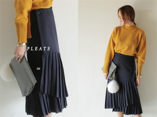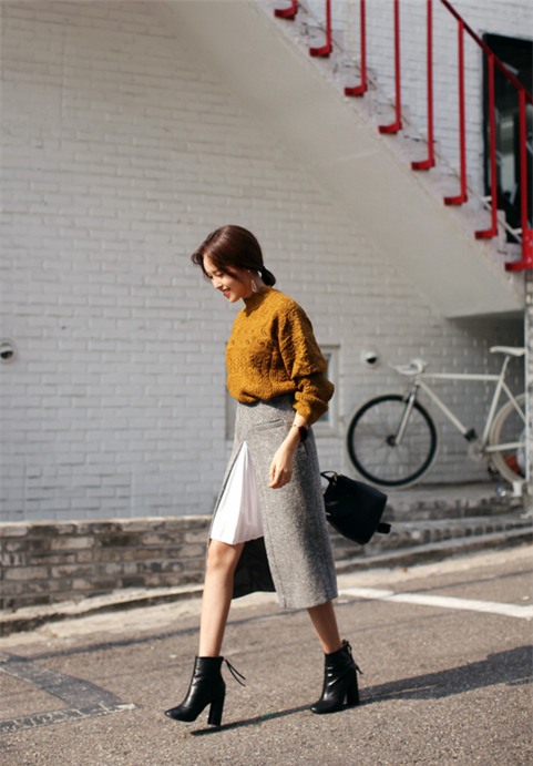 có thể học theo cách của các sao Hàn diện áo len cùng chân váy. Cách