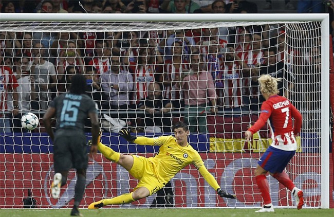 việc đánh bại Thibaut Courtois trên chấm phạt đền. 1-0 cho Atletico.