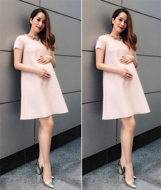Linh Nga là người đẹp thường xuyên xúng xính với giày cao khi mang bầu.