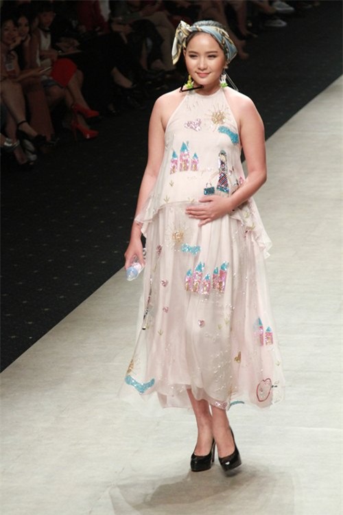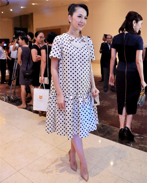 Á hậu Diễm Trang đầu tư kỹ lưỡng cho trang phục và là một trong những bà bầu sành điệu của showbiz.