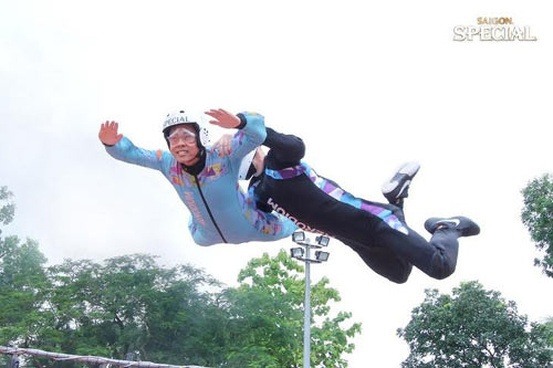 Trong đó, người chơi sẽ được thử cảm giác bay lơ lửng trên không bởi sức thổi từ một chiếc quạt gió khổng lồ bên dưới. Hãy cứ thử tự mình mặc bộ đồ bay vào và nhảy lên, bạn sẽ có cảm giác không khác gì những vận động viên nhảy dủ đang tận hưởng những đợt adrenaline dâng trào khi rơi tự do từ độ cao hàng nghìn mét cách mặt đất.