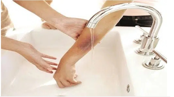 Nên nhẹ nhàng xả nước sạch vào vết bỏng để làm sạch và hạ nhiệt (Ảnh minh họa).