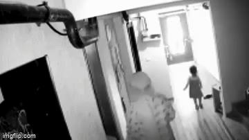 Cuối cùng, cả xe cả người bị mắc kẹt ngay trên trần trong khi bà mẹ điên cuồng gào thét, hốt hoảng với theo để kéo con xuống. Tuy nhiên, dù đã cố hết sức nhưng vẫn vô dụng, cô hớt hải chạy đến đập cửa căn phòng ngay cạnh đó cầu cứu.