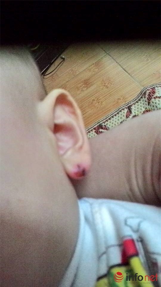 Bé Vũ Đức M. bị cắn chảy máu tai và tím lưng |