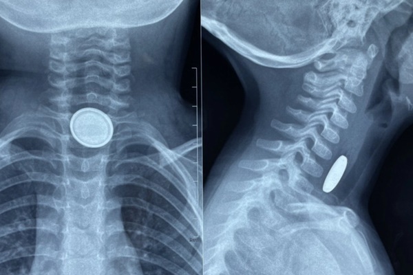 Bệnh nhi L.Q.K. (3 tuổi, trú tại Đại Từ, Thái Nguyên) được đưa vào Bệnh viện Trung ương Thái Nguyên khám do nuốt dị vật.
