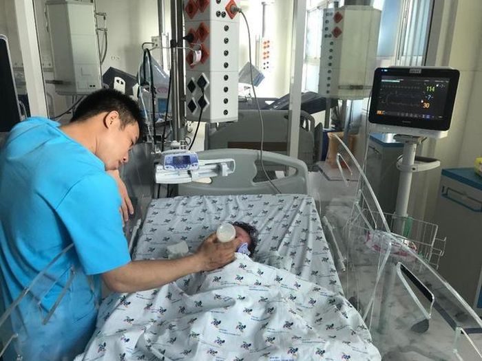 BSCKII Nguyễn Minh Tiến, Phó giám đốc Bệnh viện Nhi đồng Thành phố cho biết: "Bệnh nhi được tiếp tục truyền dịch, truyền albumin, sử dụng thuốc vận mạch, truyền máu, huyết tương tươi đông lạnh, kết tủa lạnh, tiểu cầu đậm đặc, điều trị hỗ trợ gan. Về tình trạng suy hô hấp nặng, bệnh nhi được chọc dẫn lưu dịch ổ bụng giải áp, tiếp tục điều chỉnh rối loạn toan chuyển hóa, điện giải. Sau hơn một tuần điều trị, tình trạng bệnh nhi cải thiện dần, được cai máy thở, tỉnh táo, bú được".