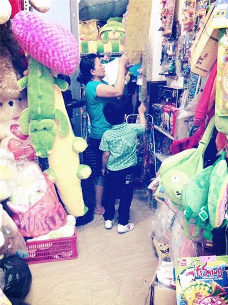 | Cậu bé sà vào một cửa hàng bán thú bông và nằng nặc đòi mua một con. |