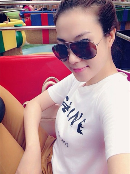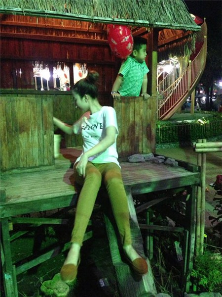 | Thanh Vân tranh thủ pose hình khi đi chơi cùng chồng và con. |