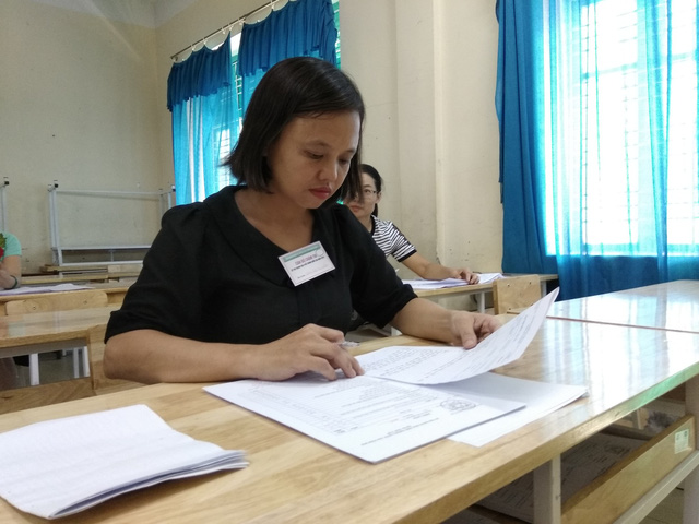 Chấm thi THPT quốc gia 2018 tại Hòa Bình. (Ảnh: Mỹ Hà).