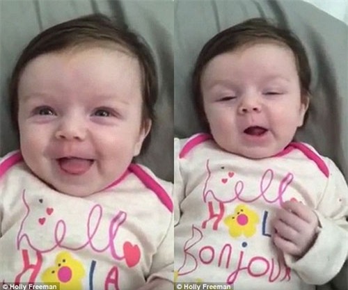 Theo quá trình phát triển ngôn ngữ bình thường ở trẻ em, trong giai đoạn từ 7 đến 12 tháng tuổi bé có thể bập bẹ một số từ đơn giản như “ma ma”, “ba ba”.... Đây là những từ phổ biến nhất mà những đứa trẻ có thể phát ra đầu tiên. Phải đến giai đoạn từ 18 đến 24 tháng tuổi, bé mới có thể tự mình nói được những từ và câu đơn giản. Tuy nhiên mới đây, một bé gái 10 tuần tuổi đến từ Bromley, London đã làm bà mẹ phải tròn xoe mắt ngạc nhiên vì biết nói “Hello” với mẹ.