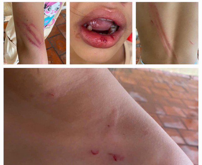 Tại đây, công an xác định người bị đánh là bé gái 10 tuổi đang học lớp 4, trường Tiểu học Bình Hòa. Bé bị rách môi, nhiều vết thương ở tay, lưng, vai,... được mẹ đưa đến cơ sở y tế thăm khám. Nghi can đánh bé gái được xác định là cha dượng. Người đàn ông này đã được công an đưa về trụ sở làm việc.