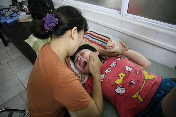 “Lần nào cũng vậy, mỗi khi bác sĩ trị liệu là con lại gào thét đến khản cổ vì đau đớn. Trong tiếng thét, con cố gọi “mẹ ơi” nhưng tiếng con chẳng tròn vành, rõ chữ. Chứng kiến cảnh con vật vã trong đau đớn, cắn nát cả môi… tôi không thể cầm lòng. Lúc đó, tôi không dám nhìn vào mặt con, tay giữ con nhưng mặt phải quay ra chỗ khác”, chị Hằng nói mà giọt nước mắt cứ lăn dài.