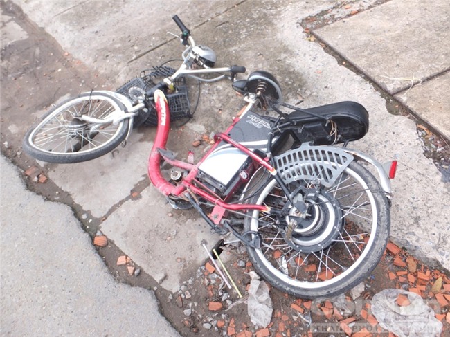 Sau khi xảy ra tai nạn tài xế nhanh chóng đưa nạn nhân đi cấp cứu. Tại hiện trường xe đạp điện bị xe tải cán nát hư hỏng nặng, máu vương vãi trên đường.