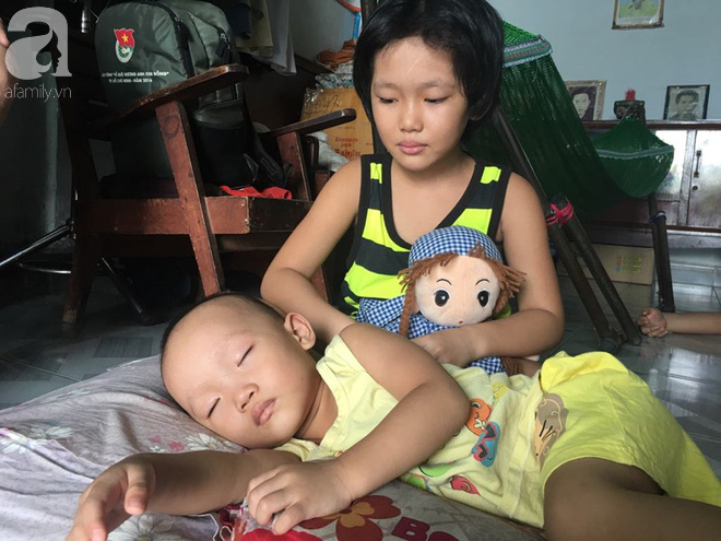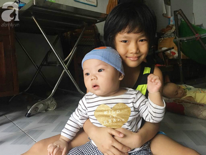 Hình ảnh cô bé nhỏ nhắn phải trông đứa em 2 tháng tuổi cho mẹ đi làm khiến không ít người xúc động.