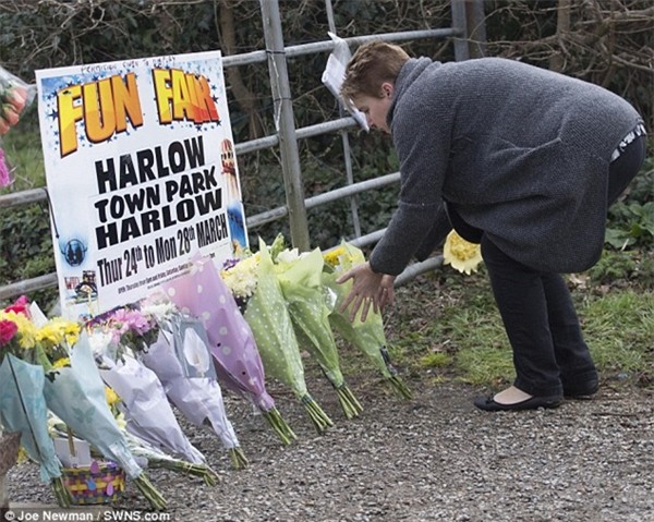 Tại các cửa vào Công viên Harlow, người dân đặt nhiều bó hoa để tưởng niệm bé gái nạn nhân của vụ tai nạn đau thương.