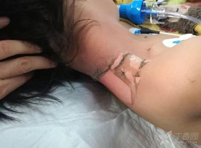 Vùng da xung quanh cổ của Đình Đình bị bỏng rát