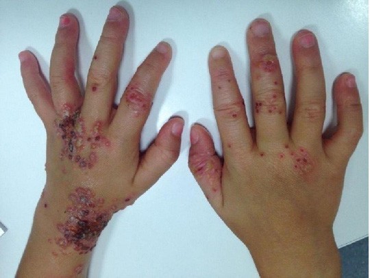 Đôi bàn tay - nơi bị nhiễm trùng nặng nhất của bệnh nhi 3 tuổi được báo cáo trên BMJ - ảnh: THE SUN