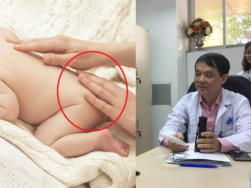 Tại vùng tiêm của bé, gia đình thấy có teo tổ chức mô mềm dưới da, tạo thành vết lõm sâu màu hồng trên có nhiều mạch máu.