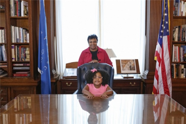 Em đã đi dạo khắp thư viện cùng bà Carla Hayden, được đeo kính của bà Hayden, mặc áo màu hồng và bước đi trên hành lang thư viện y như bà Hayden. Thậm chí, em còn được ngồi trên chiếc bàn đặc biệt, nơi thường xuyên diễn ra các cuộc họp của những người điều hành thư viện.