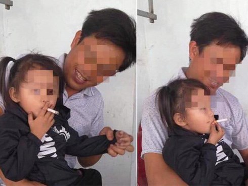 Bé gái vui vẻ hút thuốc lá, thái độ kì lạ của ông bố ngồi bên cạnh gây bức xúc