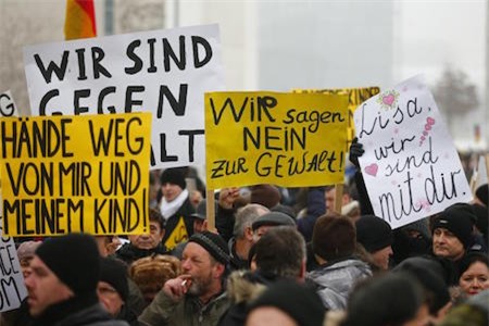 Biểu tình chống chính sách nhập cư của chính phủ tại Berlin sau vụ việc của bé gái gốc Nga Lisa ngày 23.1. |