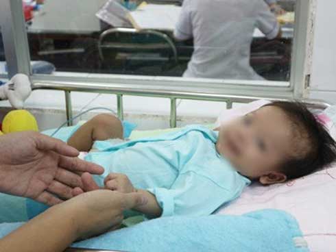 Theo người nhà bệnh nhi, sau sinh, bé bị viêm phổi kéo dài, suy hô hấp, được điều trị tại BV tỉnh nhưng không giảm.