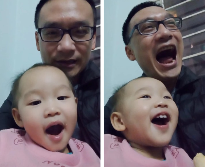 Thế là hai bố con được dịp cười ngặt nghẽo trước mỗi câu trả lời đúng của con gái. Dù chỉ là trêu con một chút nhưng biểu cảm của ông bố trẻ lẫn bé gái đều quá đỗi hài hước. Có ông bố lầy lội thế này chắc gia đình lúc nào cũng cười cả ngày.