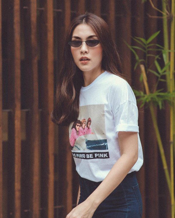 Tăng Thanh Hà ăn mặc đơn giản với áo phông và quần jeans nhưng vẫn rất hợp thời trang. Cô bông đùa: “Em gì ơi vội đi đâu đấy!”