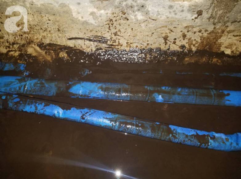 Các công nhân thau rửa tại đây cho biết, tại hầm nước tầng B2 và B3 lượng dầu cặn lại trên bề mặt bể rất lớn khiến việc di chuyển rất khó khăn vì trơn trượt.