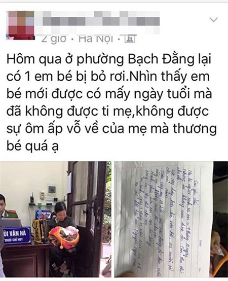 Mấy ngày nay trên một diễn đàn mạng xã hội xôn xao về một cháu bé mới sinh bị bỏ rơi ở địa bàn phường Bạch Đằng, quận Hai Bà Trưng, Hà Nội, đang cần được giúp đỡ.