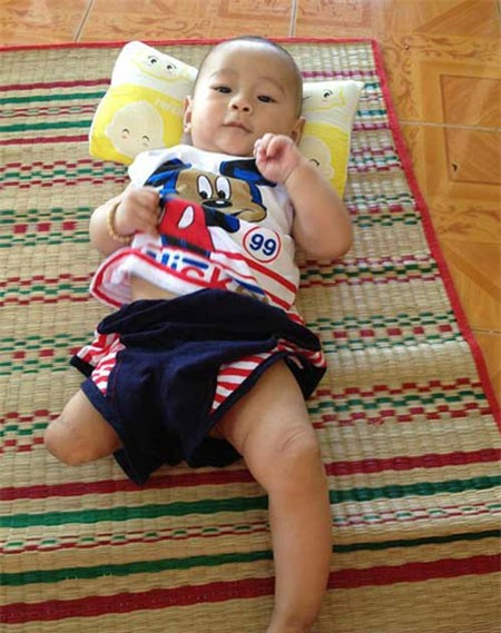 phải tháo khớp gối một bên chân nhưng bé Nguyễn Quốc Huy vẫn khoẻ mạnh