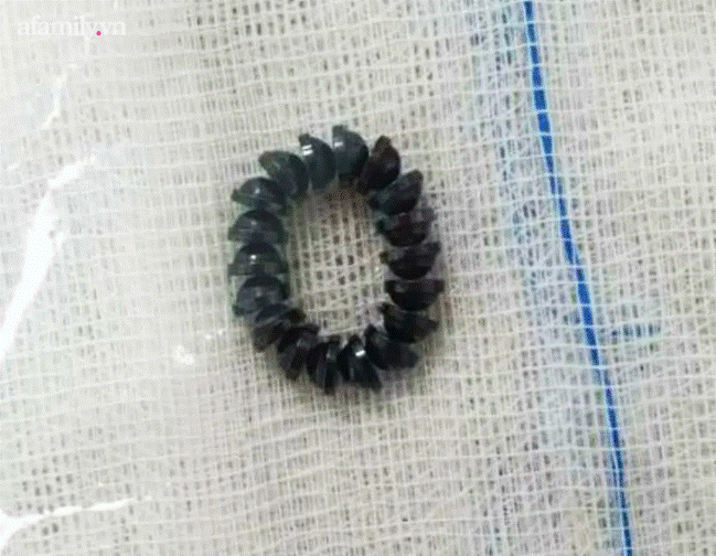 Đến khi mẹ phát hiện thì em đã nuốt hết số bi nam châm vào bụng, gia đình tá hỏa liền đưa em đến khám và nhập Bệnh viện (BV) Nhi đồng Thành phố (TP.HCM). Thời điểm nhập viện vé không đau bụng, không ói nhưng vô cùng hoảng loạn.