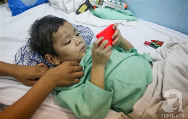 Nằm trên giường bệnh sau hơn 2 ngày điều trị, bé Thiện đã có thể nói rõ và trả lời nhiều câu hỏi. “Con thương ba lắm, con đợi ba vào thăm con”, bé Thiện nói với giọng hồn nhiên. Hỏi bé quý ai nhiều hơn, cậu nhanh chóng nói đều thương cả ba và mẹ.