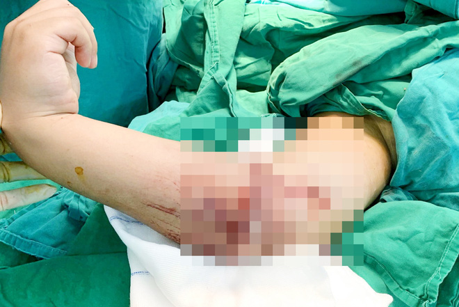 Cụ thể, ê-kíp phẫu thuật rửa sạch vết thương, thám sát dưới kính vi phẫu thấy xương trụ và xương quay gãy 3 mảnh. Đồng thời kết hợp xương bằng dụng cụ, bác sĩ tìm và nối được một nhánh động mạch, sau nối phần cẳng tay bên dưới hồng và nối 2 tĩnh mạch đi kèm, thần kinh giữa, thần kinh quay... sau đó rửa và khâu vết mổ, nẹp bột, khâu vết thương vùng trán.