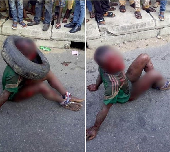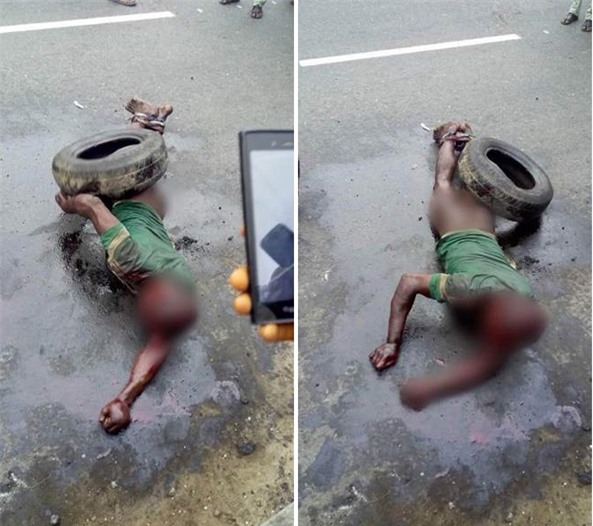 Sau đó, họ tưới xăng vào lốp xe và thiêu sống cậu bé đến chết. Những hình ảnh dã man trên đã được cư dân mạng lan truyền chóng mặt. Một số người cho rằng cậu bé chỉ tầm 7 tuổi mà thôi.
