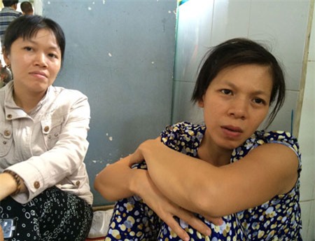 Gương mặt chị Duyên (áo đen) hiện rõ vẻ phờ phạc vì nhiều đêm mất ngủ, lo lắng cho con. Ảnh: Thanh Huyền.