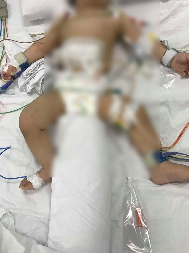 Bé trai bị mẹ ruột dùng dao "tấn công" hiện đang nằm theo dõi tại khoa Hồi sức tích cực