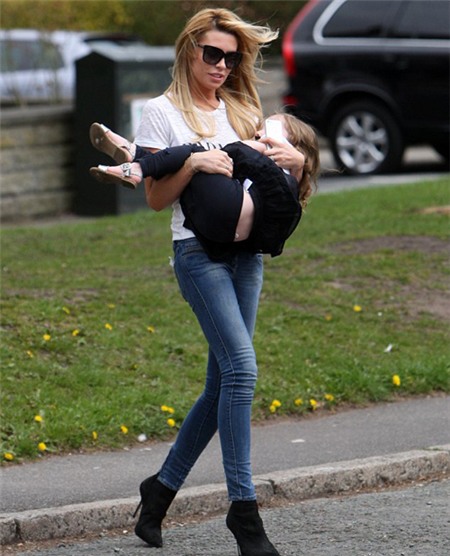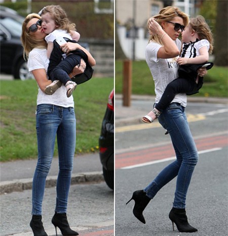 | Con gái hiếu động khiến người mẫu Abbey khá vất vả, liên tục đổi tư thế bế. |