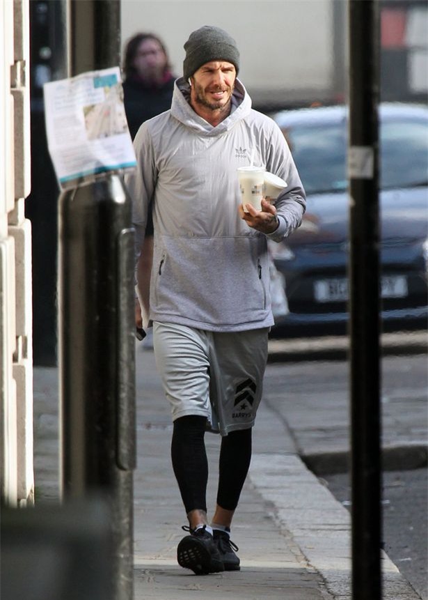 Beckham hiện sống ở London và vẫn ra ngoài đi dạo như bình thường. Vợ anh, Victortia, hôm 6/2 bay sang New York để dự Tuần lễ thời trang.