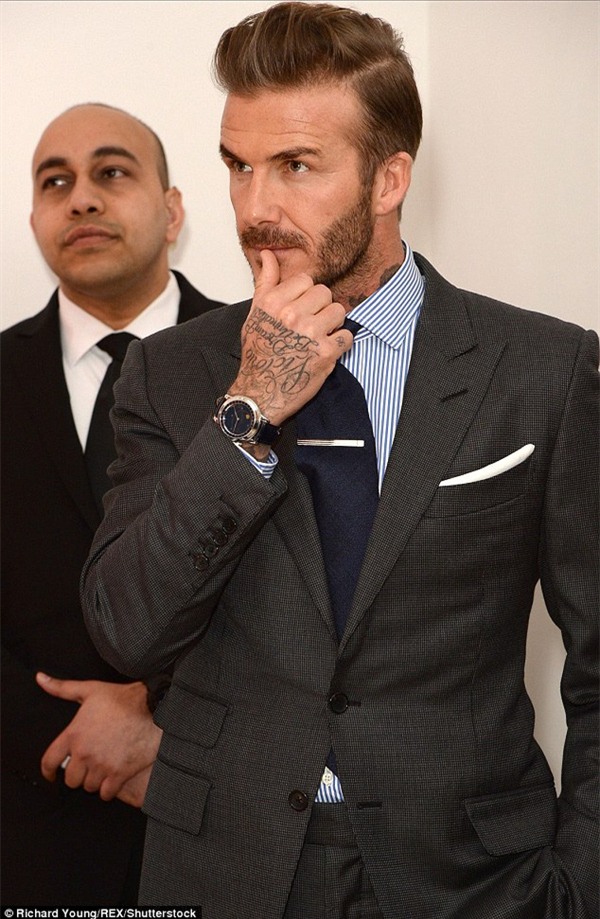 Trên tay Beckham là chiếc đồng hồ của thương hiệu Patek Philippe. Ước tính, nó có giá khoảng 6,5 tỷ VNĐ.