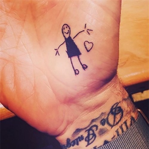 Dù vậy, hình xăm ngộ nghĩnh trên lòng bàn tay được Beckham khoe với thái độ rất tự hào. Đó chính là tác phẩm của cô con gái út của ngôi sao này. Hình xăm này thực sự là một công trình đối với Harper, khi bé gái này mới chỉ lên 4.
