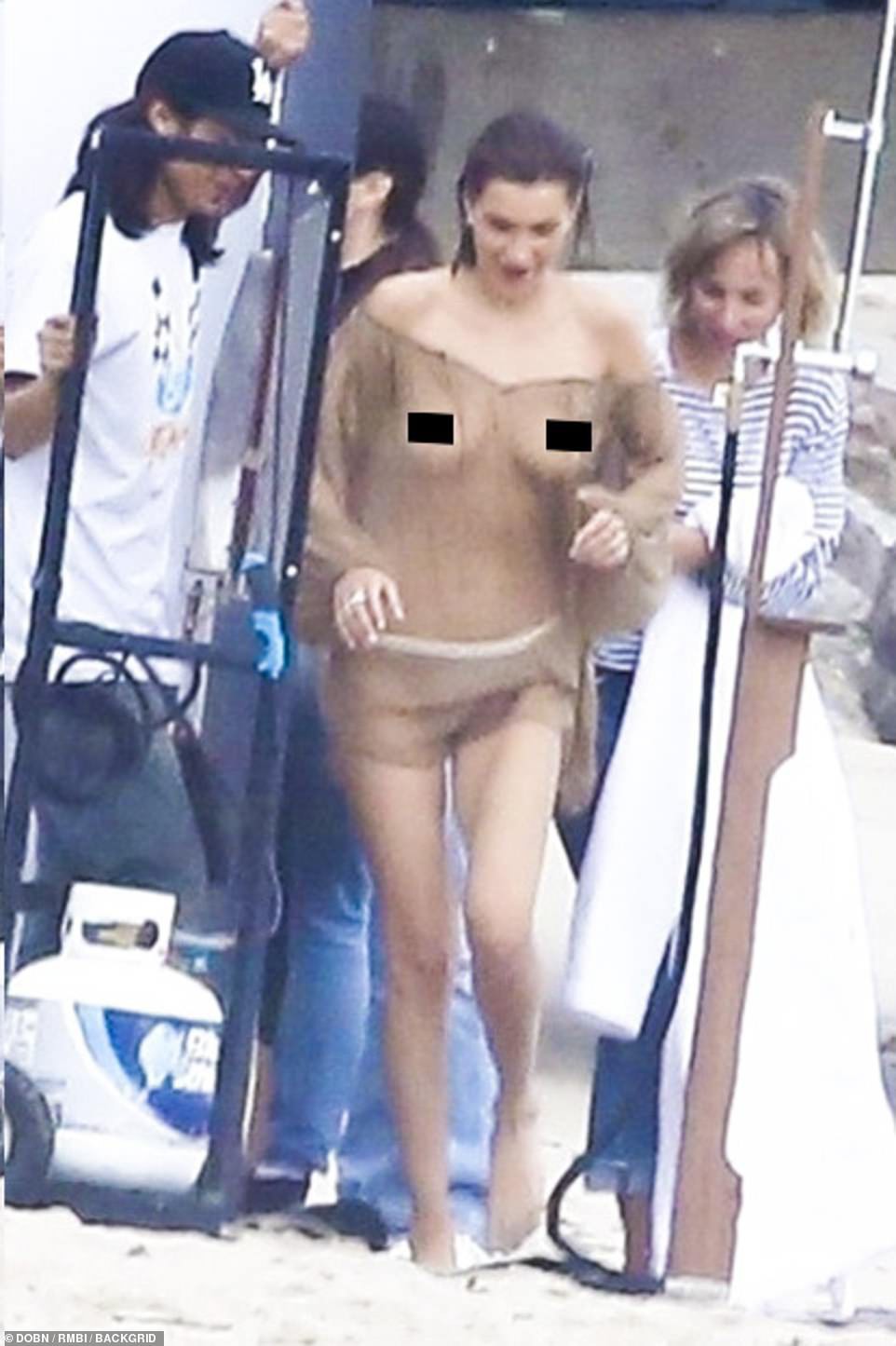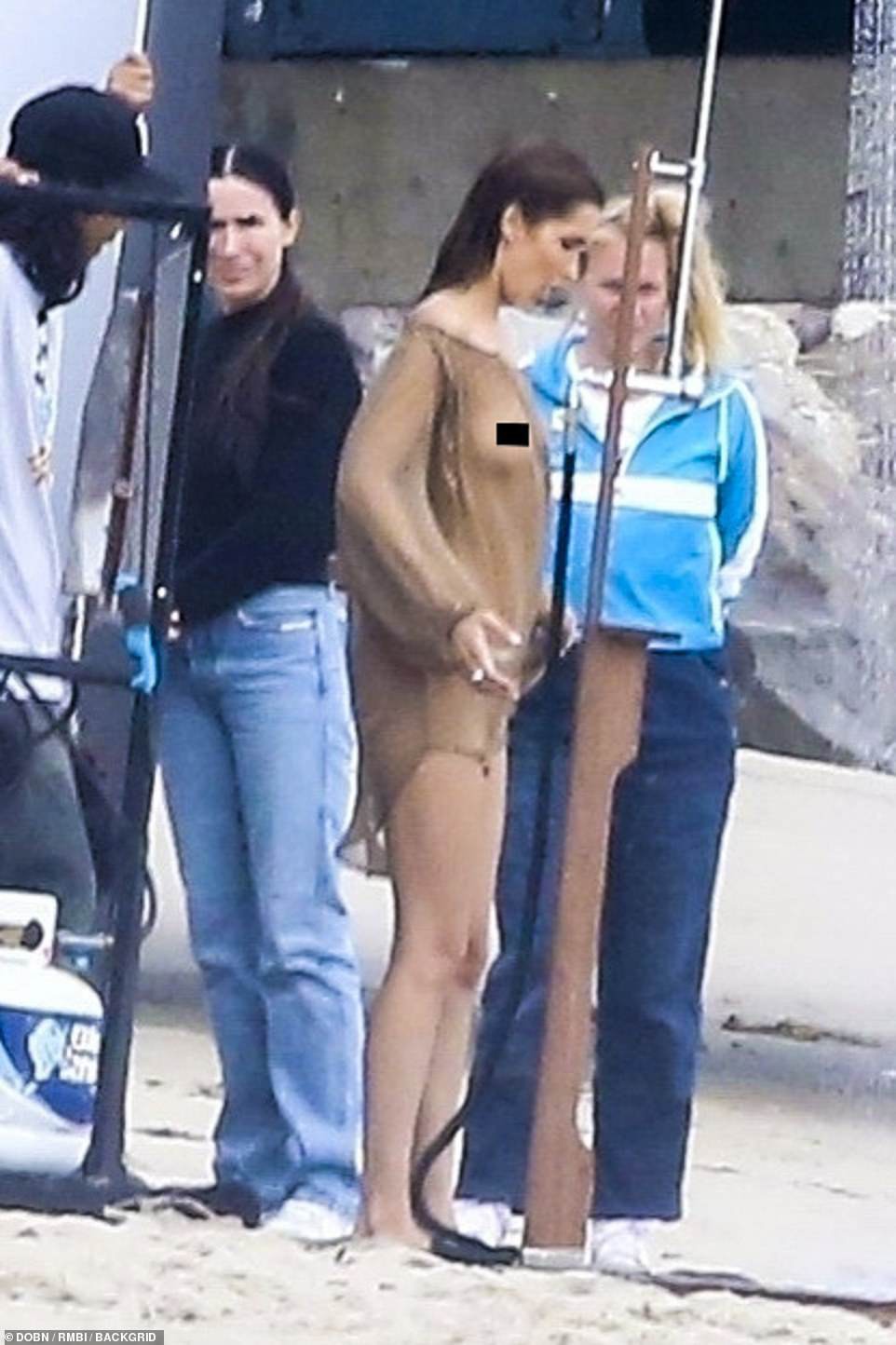Sáng ngày hôm qua 13/5, siêu mẫu nổi tiếng thế giới Bella Hadid đã có một buổi chụp hình tại bờ biển Malibu, Los Angeles. Đáng chú ý, trong thời gian chờ chụp hình, người đẹp 23 tuổi này chỉ mặc một chiếc áo rộng xuyên thấu khiến người xem có thể dễ dàng nhìn thấy nội y và bộ ngực hoàn toàn được "thả rông".