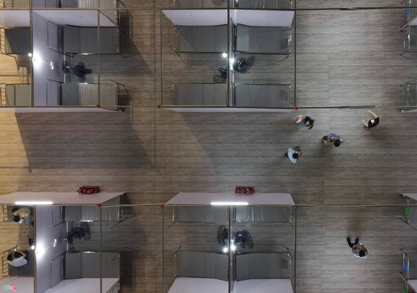 Các giường ngăn cách nhau bằng vách nhựa có diện tích khoảng 4-5 m2.