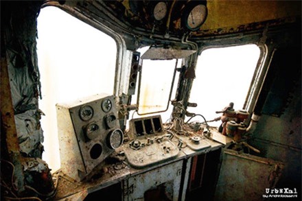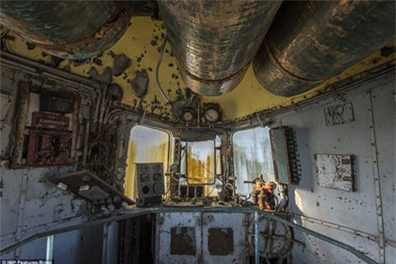 trong tình cảnh bị rỉ sét bên ngoài, ghế rách nát, bụi phủ kín cửa sổ. |