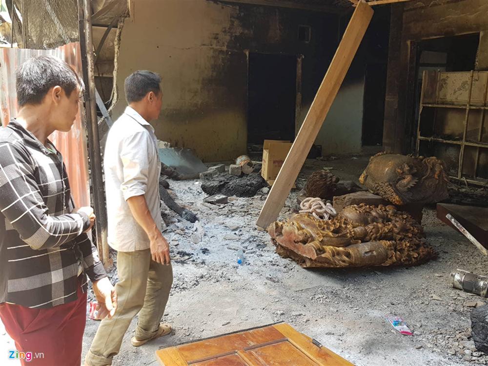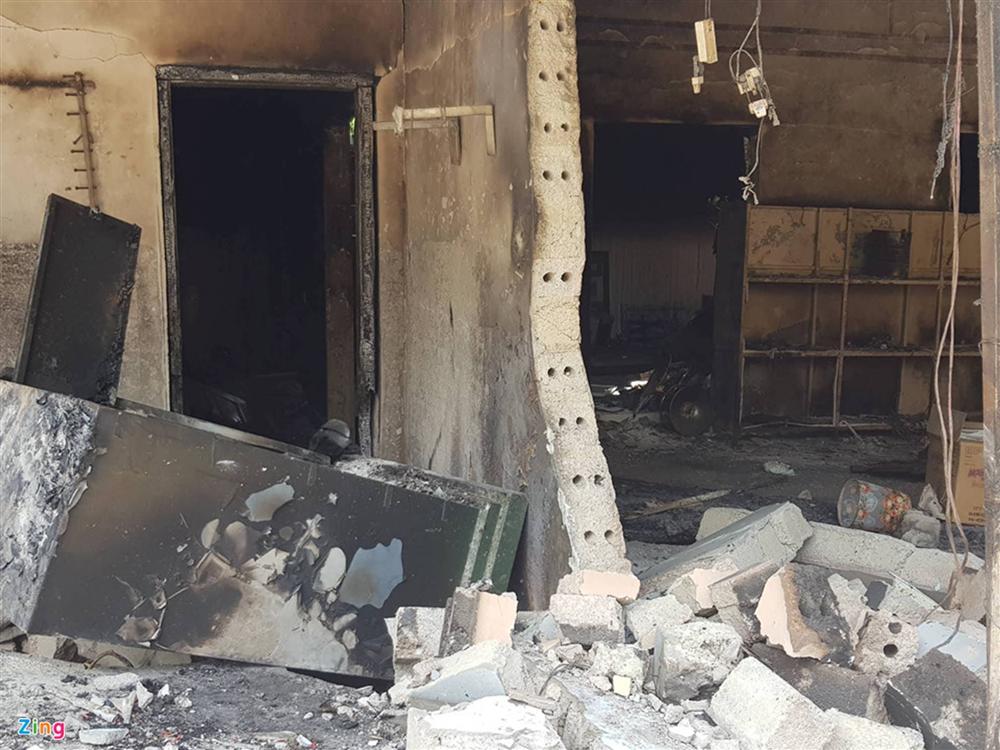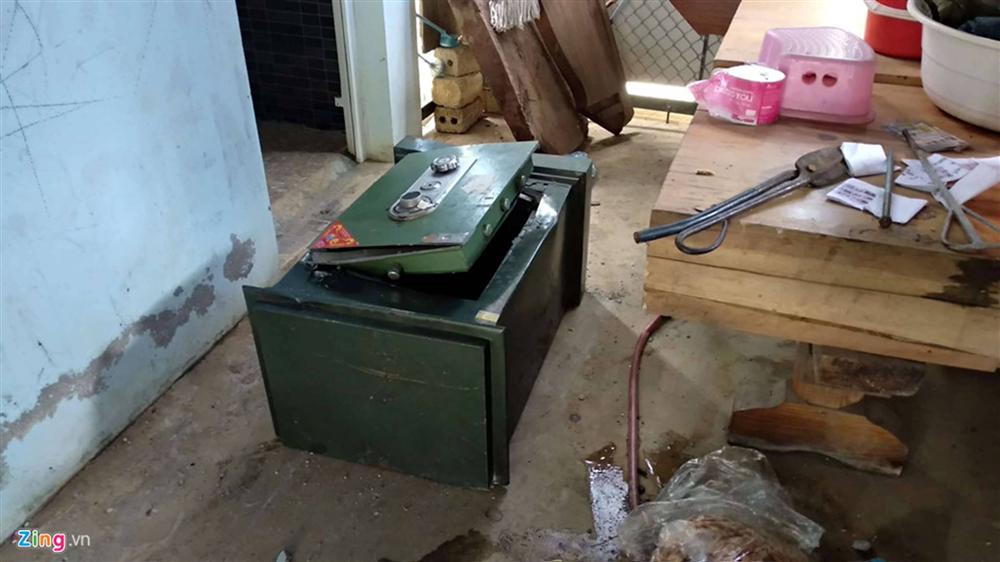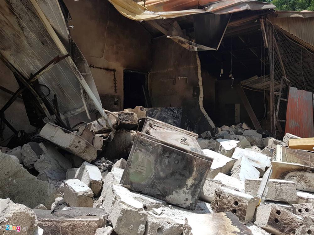 Các bước tường nhà Tuân bị đổ nát, mái tôn bị sập hoàn toàn. Tại hiện trường còn có cả chiếc két sắt.