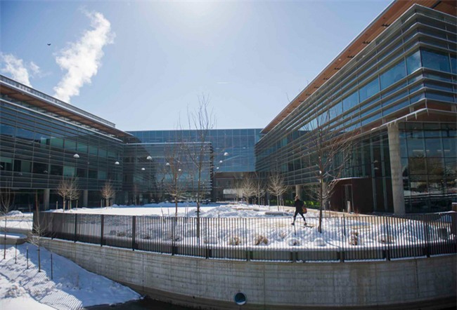Sảnh của tòa nhà đầu tiên trong khuôn viên mới của Google ở Boulder. Tòa nhà mới của Google tại Boulder, Colorado, mở cửa vào tháng 12 năm ngoái, nằm trên khu đất rộng hơn 1,7 ha.